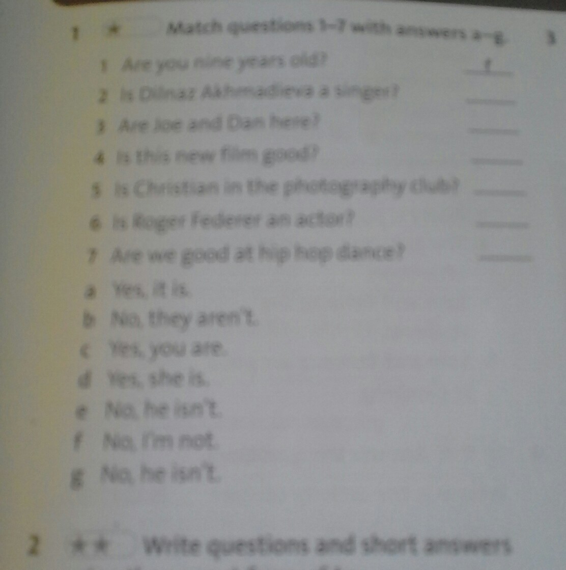 1f 2d 3d 4a 5e 6g 7b (в пункте b опечатка в книжке - должно быть: No, we arent.)