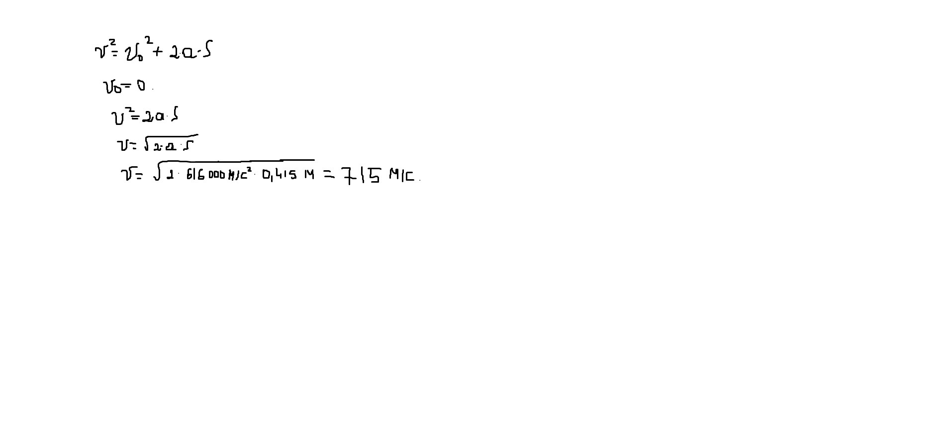 Стрелок выстрелил из ружья, длинна ствола равна 41,5 см, ускорения равно 616 км/с^2, начальная скорость 0, найдите скорость патрона