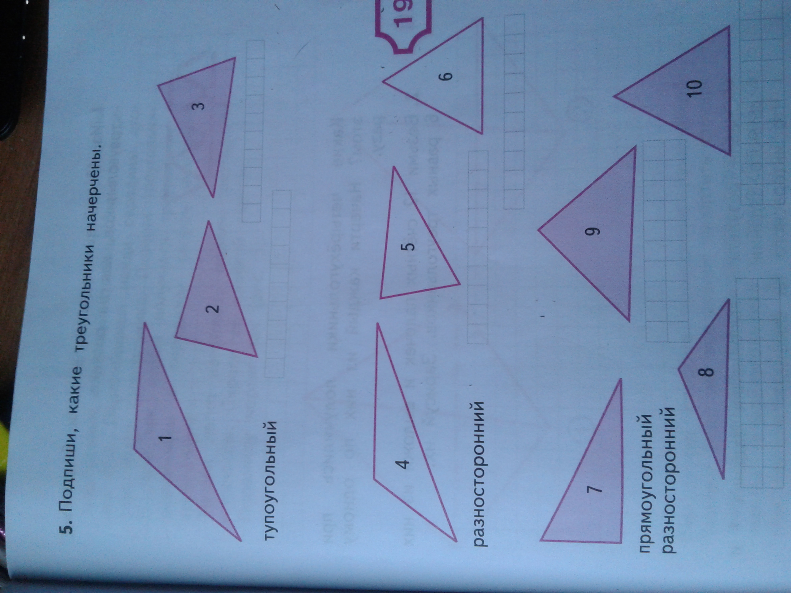 2-прямоугольный 3-разносторонний 5-равнобедренный 6-равноугольный