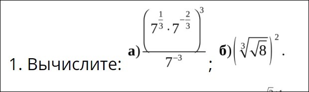 sqrt[]{8}=8^{ frac{1}{2} } \ \ sqrt[3]{ sqrt[]{8} }=(8^{ frac{1}{2}})^{ frac{1}{3} }=8^{ frac{1}{2} cdot frac{1}{3} }=8^{ frac{1}{6} } \ \ (8^{ frac{1}{6} })^2=8^{ frac{1}{3} }=2](https://tex.z-dn.net/?f=+sqrt%5Bn%5D%7Ba%7D%3Da%5E%7B+frac%7B1%7D%7Bn%7D%7D+%5C++%5C+%0A+sqrt%5B%5D%7B8%7D%3D8%5E%7B+frac%7B1%7D%7B2%7D+%7D+%5C++%5C++sqrt%5B3%5D%7B+sqrt%5B%5D%7B8%7D+%7D%3D%288%5E%7B+frac%7B1%7D%7B2%7D%7D%29%5E%7B+frac%7B1%7D%7B3%7D+%7D%3D8%5E%7B+frac%7B1%7D%7B2%7D+cdot++frac%7B1%7D%7B3%7D+%7D%3D8%5E%7B+frac%7B1%7D%7B6%7D+%7D+%5C++%5C+%288%5E%7B+frac%7B1%7D%7B6%7D+%7D%29%5E2%3D8%5E%7B+frac%7B1%7D%7B3%7D+%7D%3D2+)