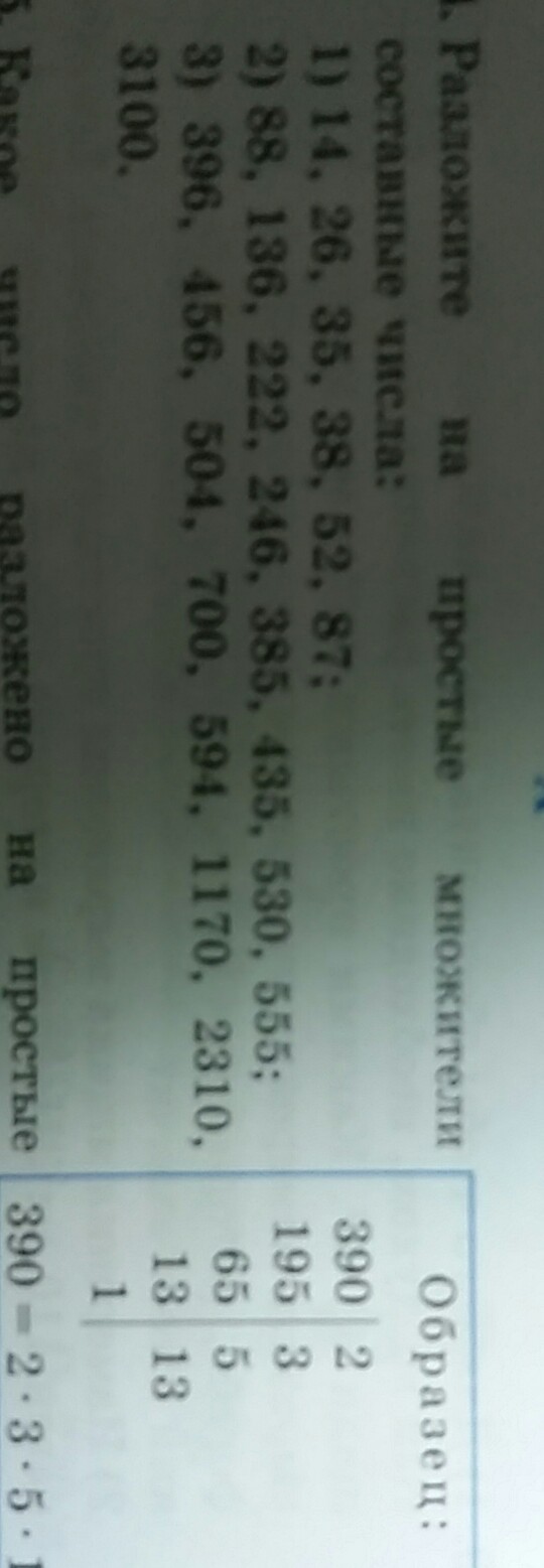 1170=2×5 х 3 ×3 ×13 ; 2310= 2 ×5×3×7×11 ; 3100 = 2×2×5×5×31