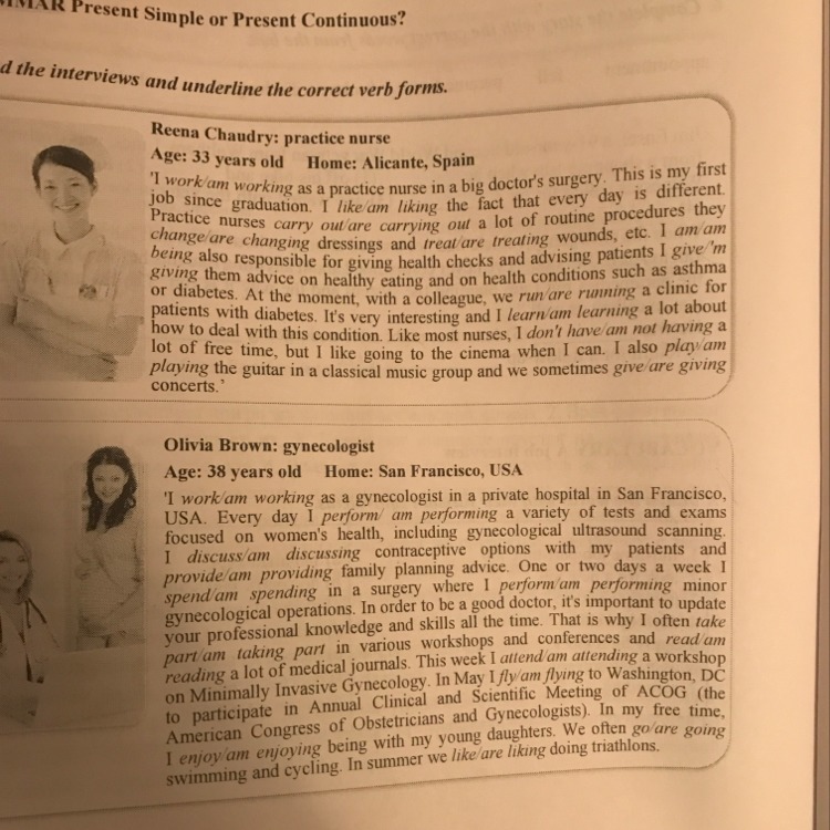 1. I work; I like; carry out; change; treat; am; give; are running; learn; don't have; play; give.