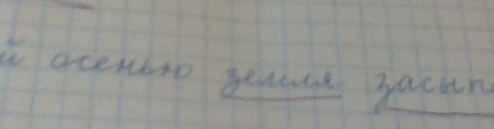 Осенью(сущ) поздней(прил) земля(сущ) засыпает(глаг)