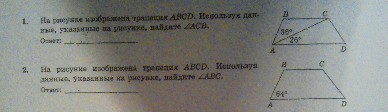 1)угол АСВ=углу САD=26( как накрест лежащие при параллельных AD и BC, и секущей AC)