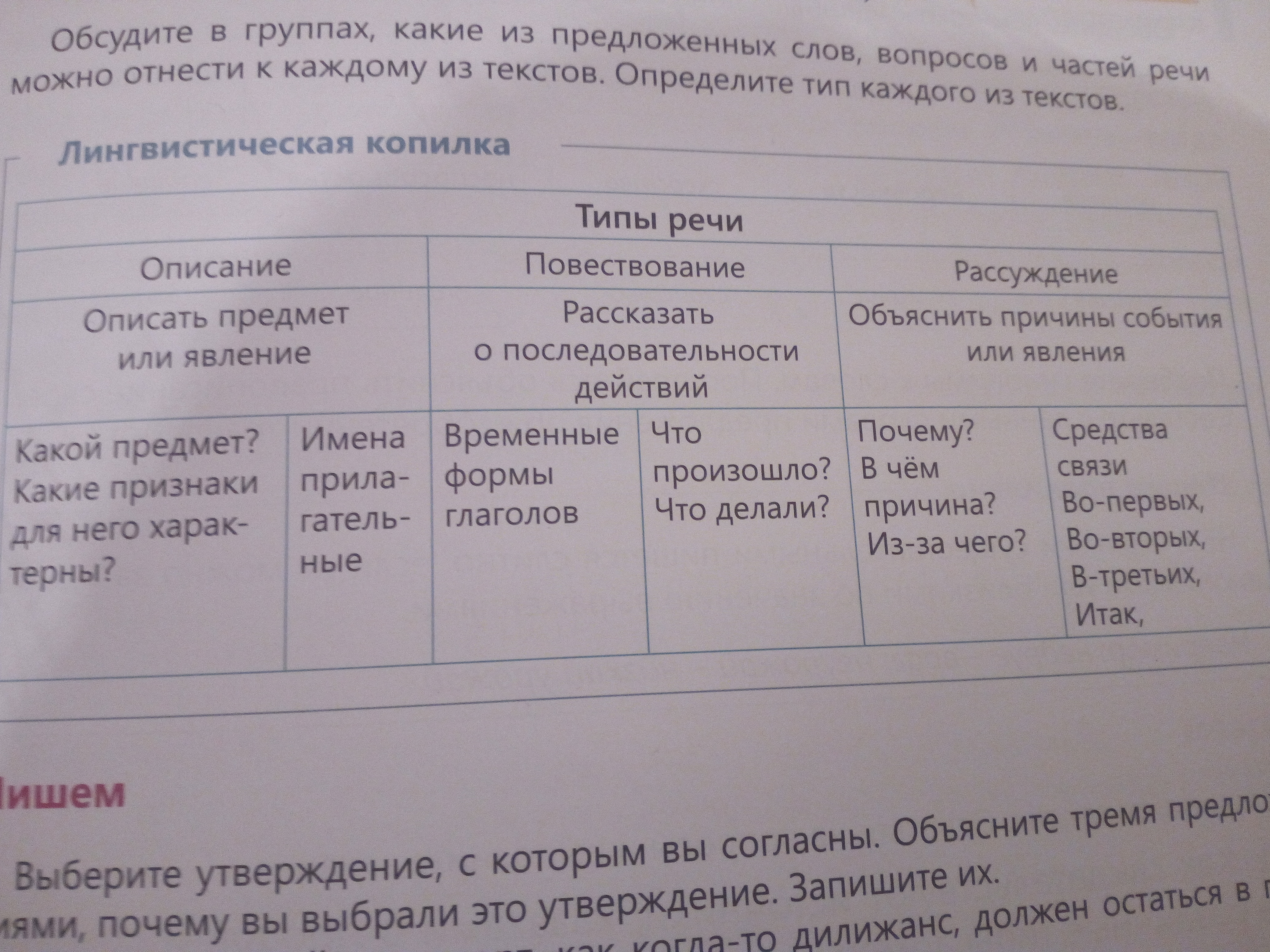 1 тип текста прилогательный 2 тип текста рризнак действие 3 тип текста почему вопросы рассужденые