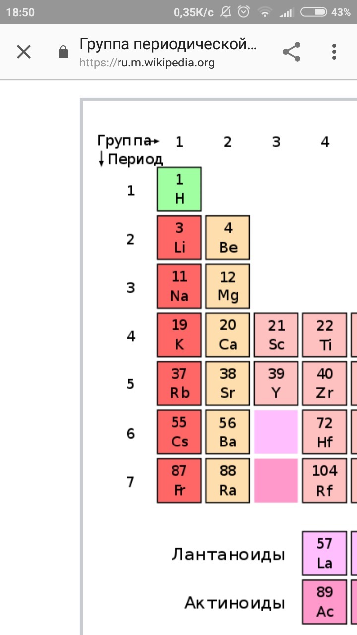 Водород, Литий, Натрий Калий, Рубидий и так. далее