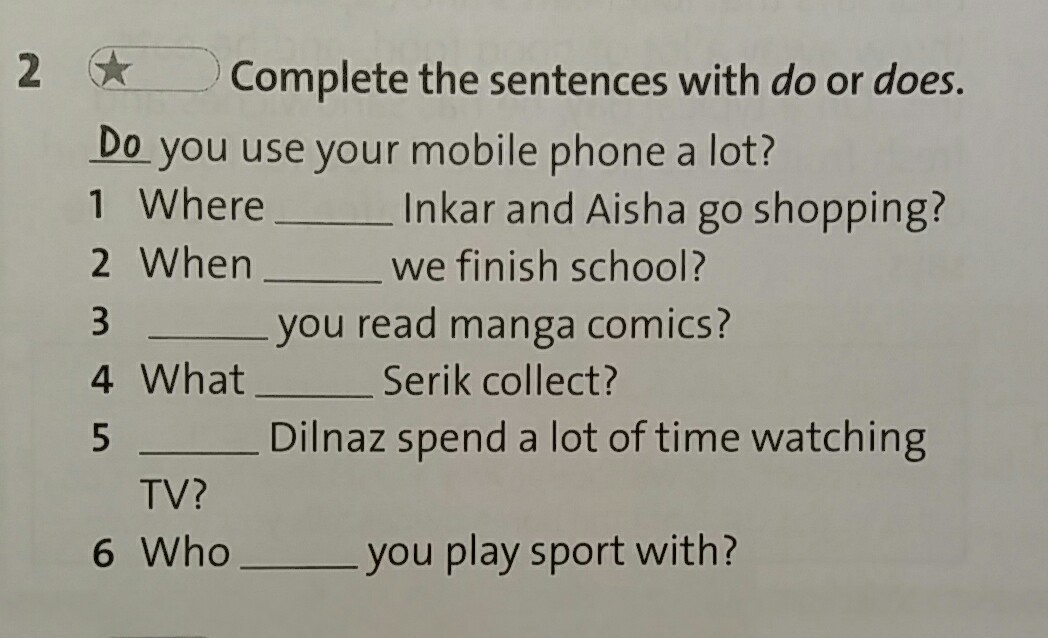1)Do 2)do 3)do 4)does 5)does 6)do