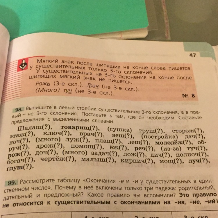 шалаш, товарищ,груш, сторож, этаж,ключ, врач, вещь, дач, ночь,луж, плащ, лещь, молодёж, обруч, дрож, помощь, ёж, речь, туч, рожь, дочь, задач, ложь, дучь,полночь, богочь, чертёж, малыш, кирпич, мощь, луч, глушь