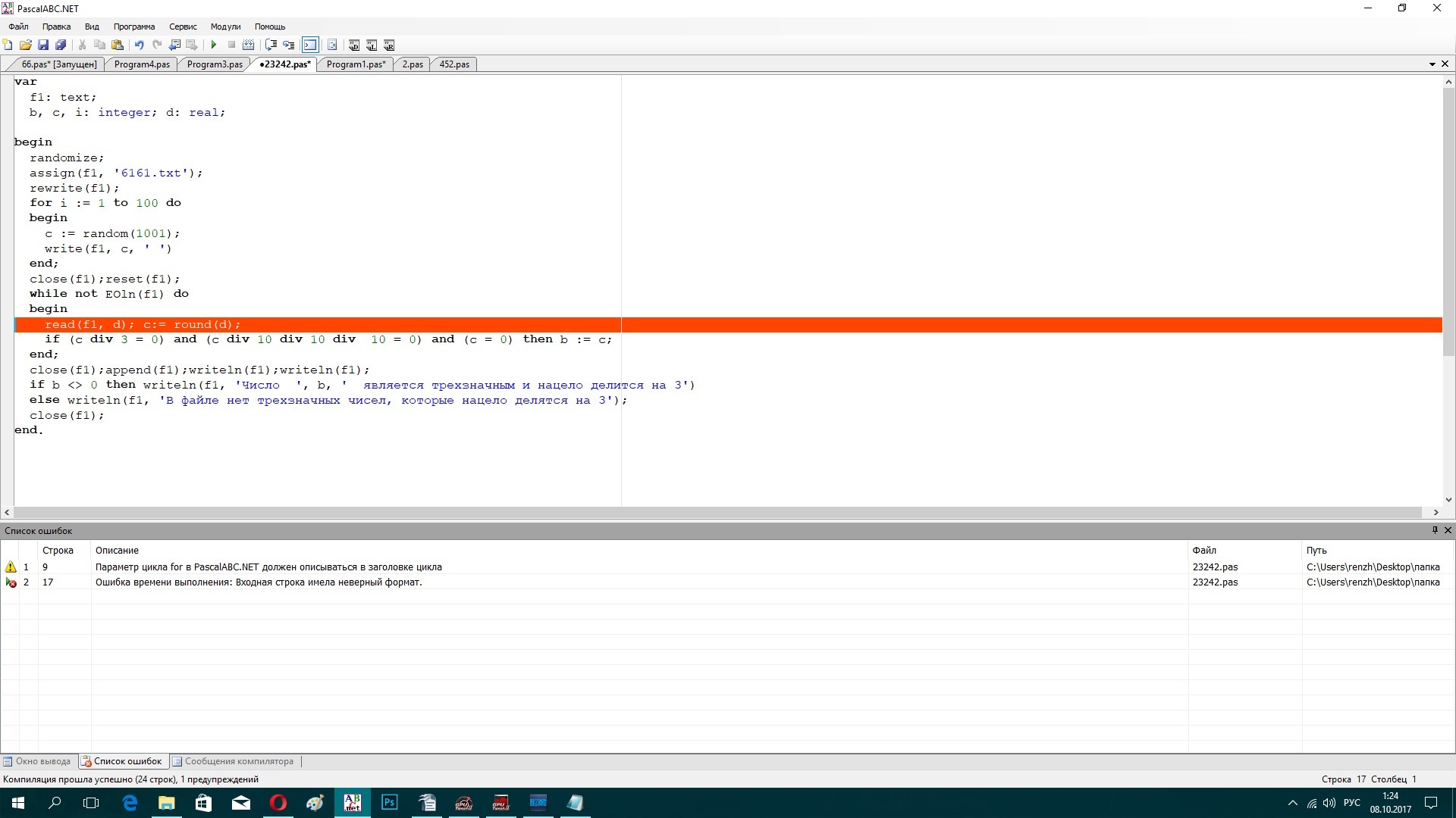 Как исправить? 23242.pas(18) : Ошибка времени выполнения: Входная строка имела неверный формат.