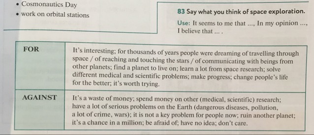 In my opinion, space exploration is very interesting occupation because maybe one day we will find another planet where to live on. I believe it changes people's life for the better and makes progress. But sometimes it seems to me that it is just a waist of time and money because there are lots of serious problems on Earth and firstly we have to do something with our planet.
