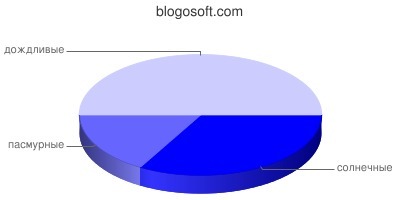 30 дней - это 100 %, следовательно 10 солнечных дней это 10*100/30=33,3 % или 1/3 часть круговой диаграммы, 5 пасмурных дней - это 5*100/30= 16,6% или почти 1/5 круговой диаграммы, остальное будет дождливые дни соответственно 50,1% или половина круговой диаграммы.