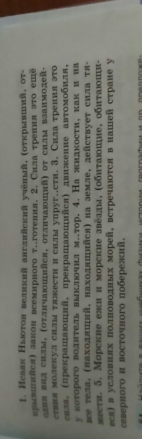 1) Исаак Ньютон - великий английский ученый, (открывший закон всемирного тяготения). (открывший - действительное причастие, прошедшего времени)