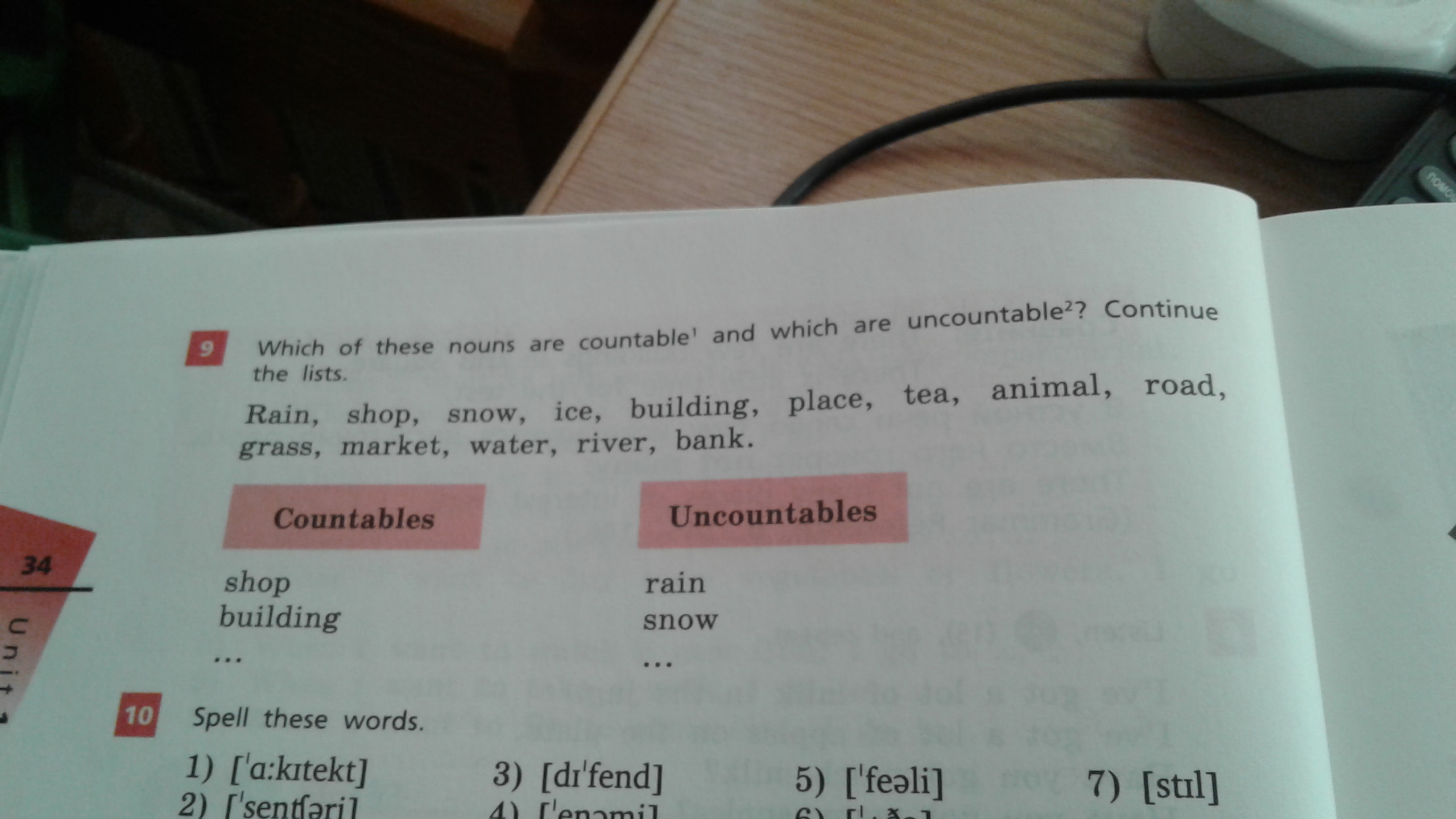 Countables: building, place, animal, road, market, river, bank.