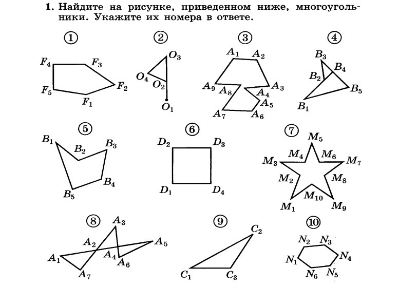 Найдите на рисунке приведённом ниже многоугольники.укажи в ответе
