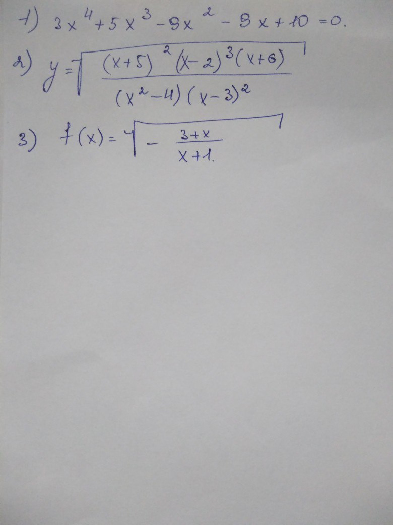 1) 3x^4 + 5x^3 - 9x^2 - 9x + 10 = 0