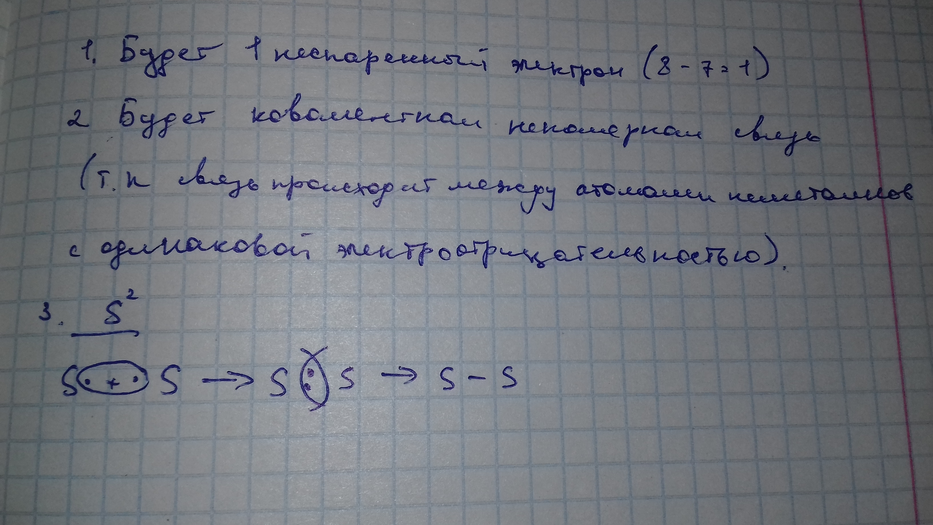 Сколько неспаренных электронов имеют атомы серы? Какая связь будет в молекулах S²? Запишите схему образования связи в молекулах S². Заранее спасибо за ответ. :-) буду очень благодарен