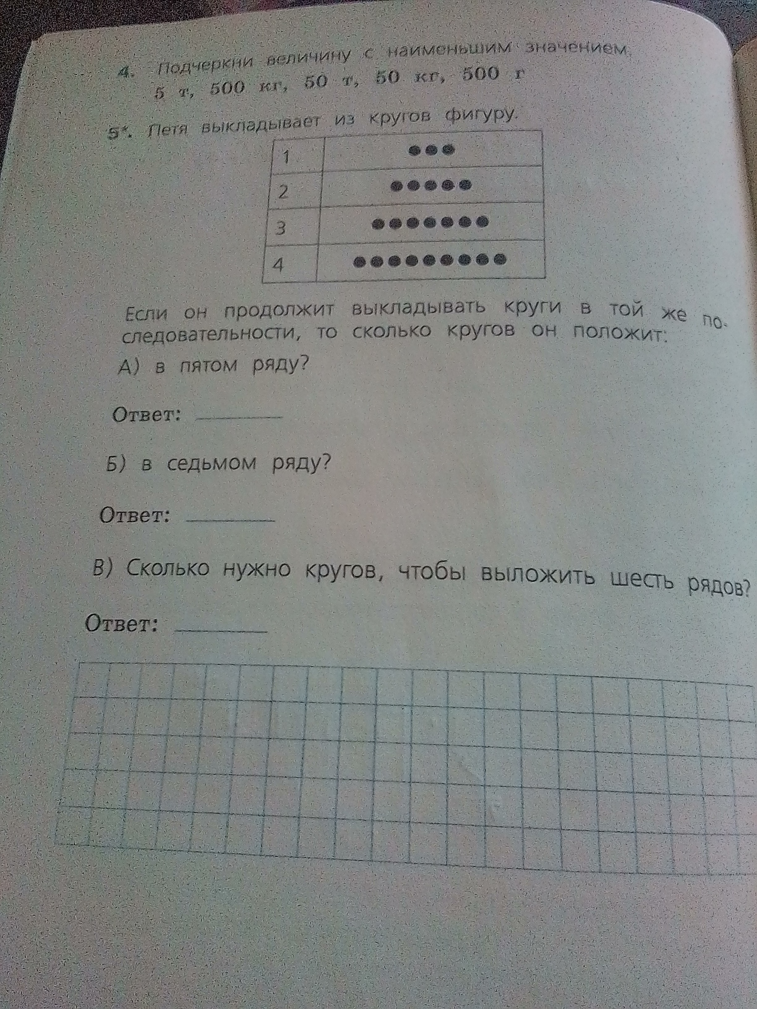 в каждом ряду на 2 круга больше