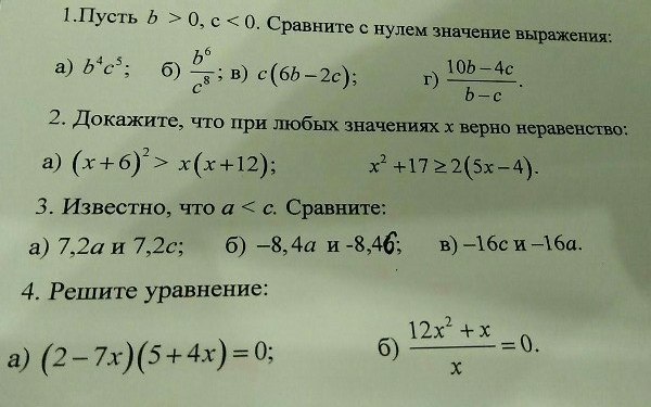 б) b⁴>0, c⁸>0 поэтому b⁴/c⁸ >0