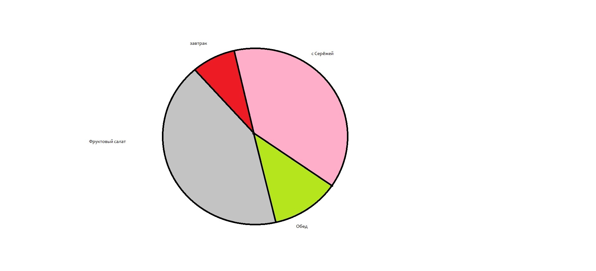 На завтрак он съел 2 .Потом к нему пришёл друг Серёжа,с которым он съел 7 яблок.На обед-3 яблока.На ужин он и его мама сделали фруктовый салат,на который потратили 8 яблок.Составьте круговую диаграмму по этой задаче.