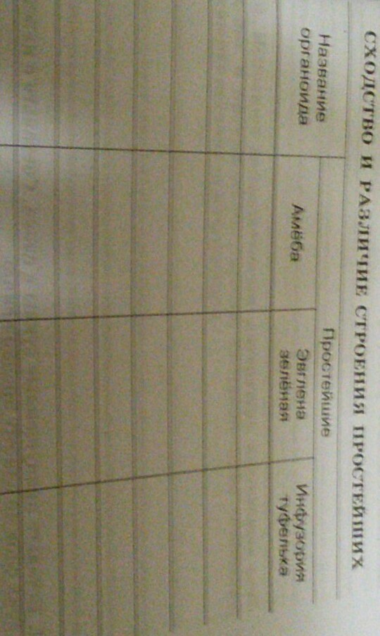 Заполните таблицу: Сходство и различие строения простейших