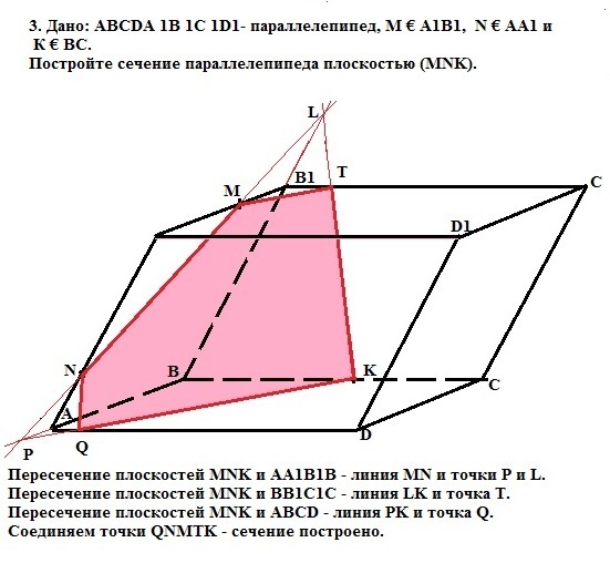 3. Дано: ABCDA 1B 1C 1D1- параллелепипед, М € А1 В1,N € АА1. К€ ВС