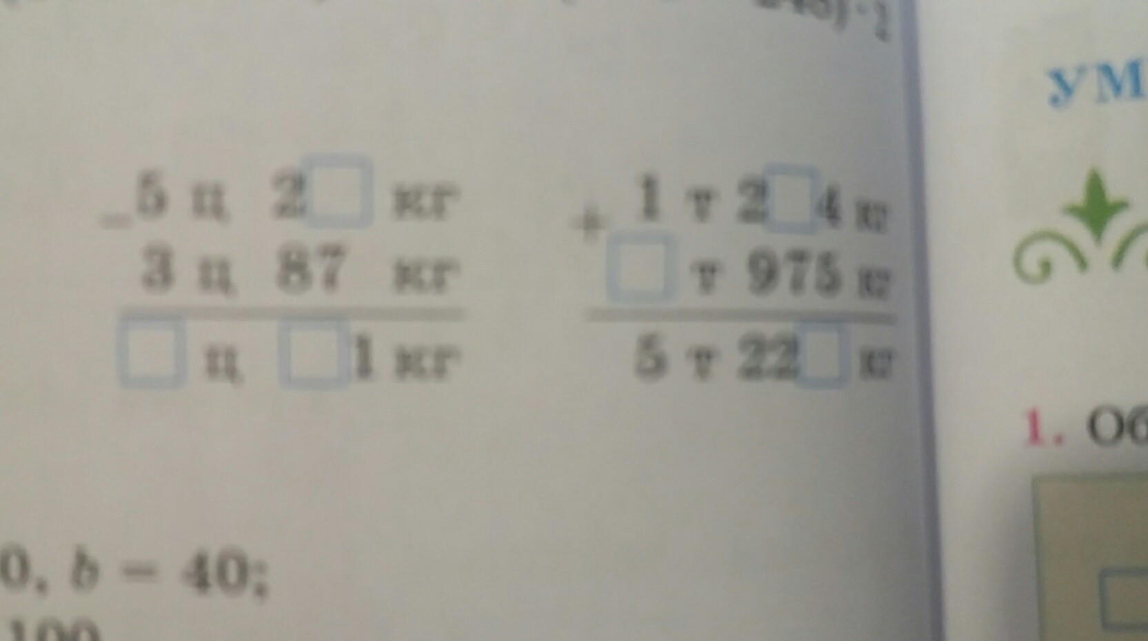 5 ц 28 кг - 3 ц 87 кг = 1 ц 41 кг 1 т 254 кг + 3 т 975 кг = 5 т 229 кг