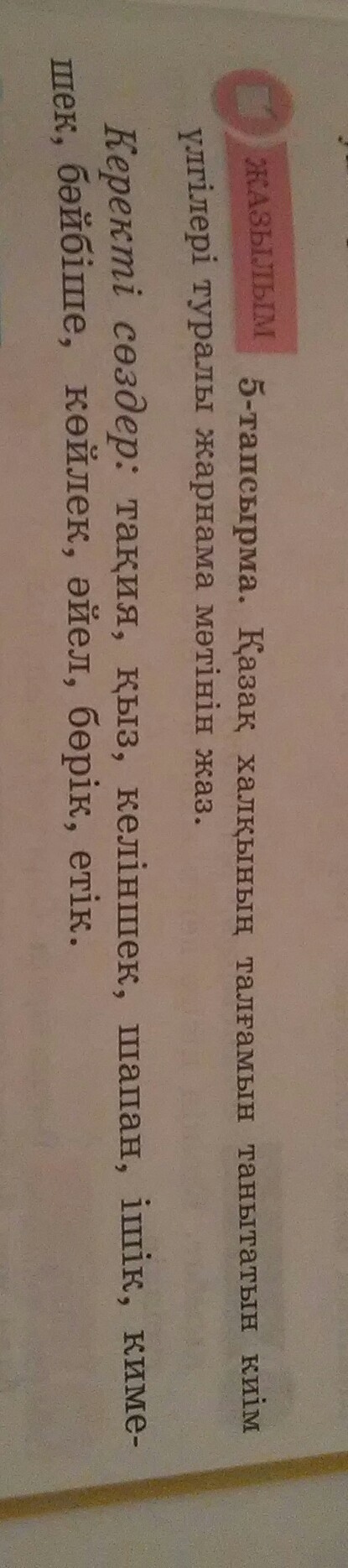 Қазақ халқының ежелден келе жатқан ұлттық киімдері: тақия, кимешек,етік, сəукеле, шапан, ішік т.б.
