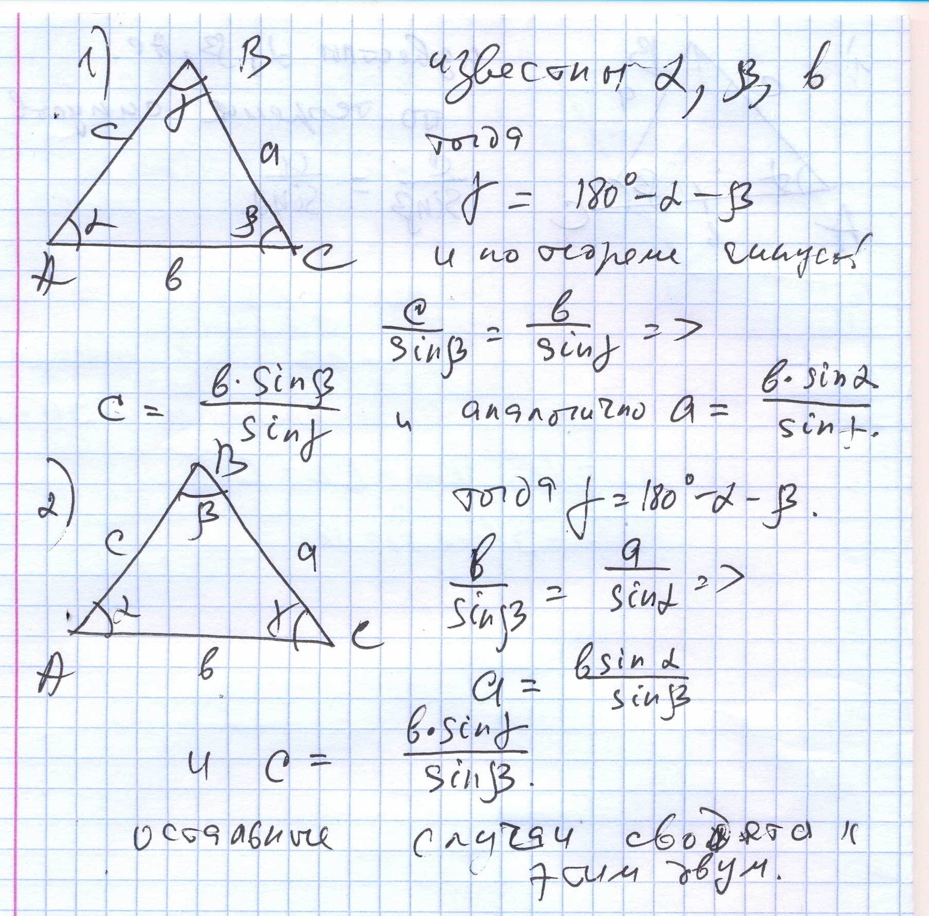 Теоремы синусов и косинусов решают все эти проблемы. Для данного случая достаточно теоремы синусов.