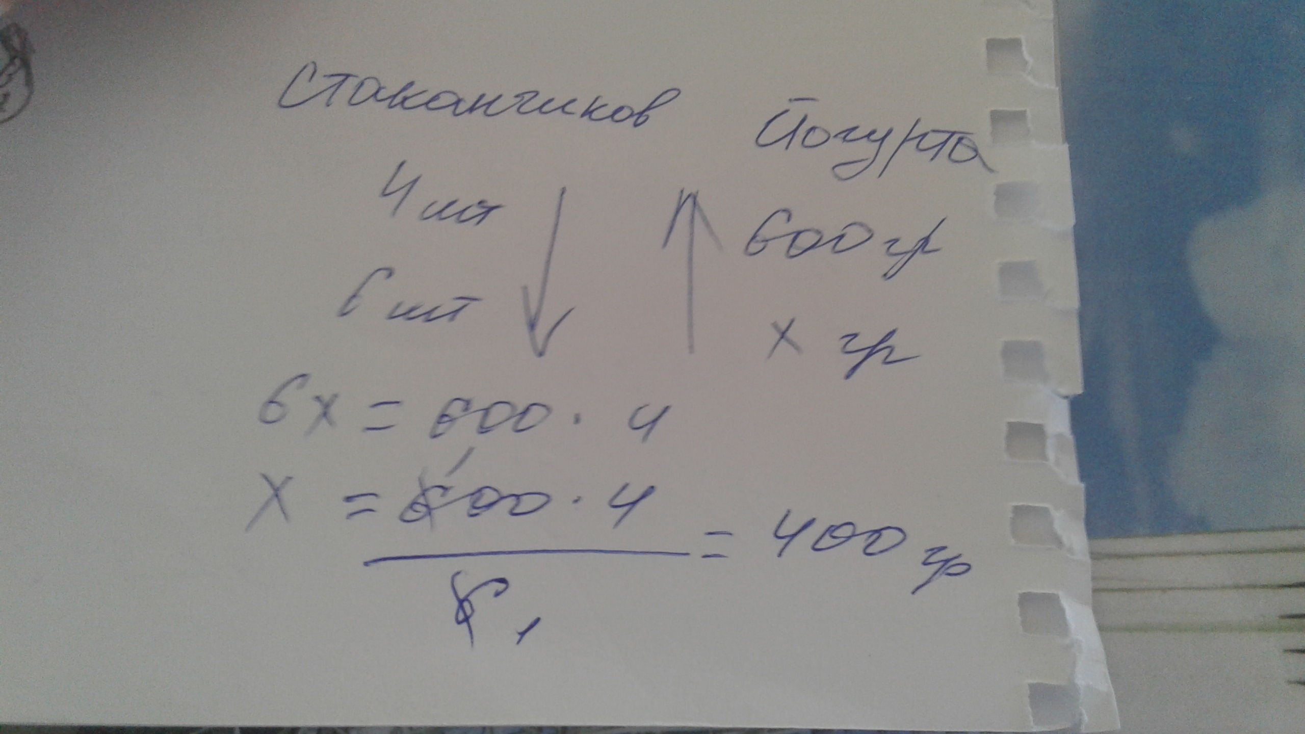 1) В наборе из четырех стаканчиков 600 г йогурта. Найдите массу шести таких стаканчиков