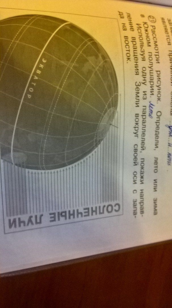 Используя одну из параллелей, покажи направление вращение земли вокруг своей оси с запада на восток. Как там?