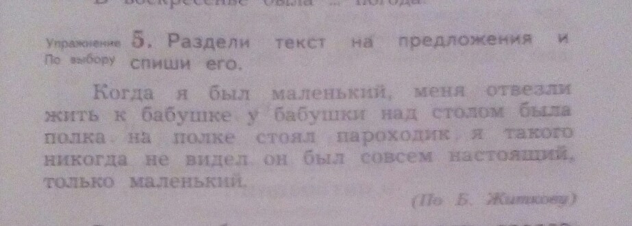 Когда я был маленький, меня отвезли к бабушке. У бабушки над столом была полка. На полке стоял параходик. Я такого никогда не видел. Он был совсем настоящий, только маленький.