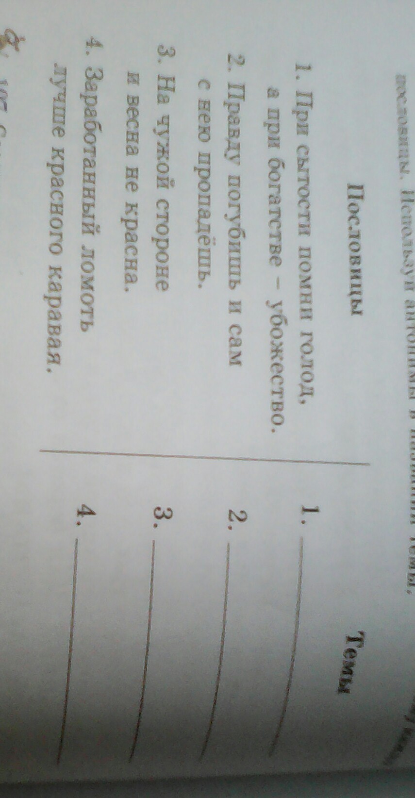 Решите русский язык. Напишите тему каждой пословицы. Используйте антонимы в названии темы.
