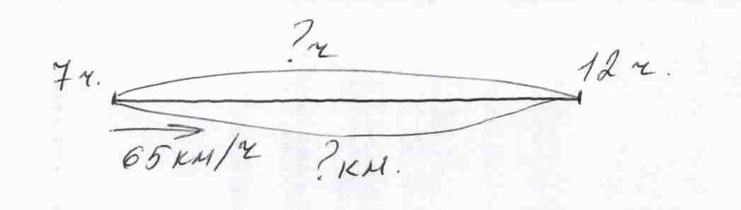 12-7=5(ч) он ехал 2)65*5=325(км) он проехал