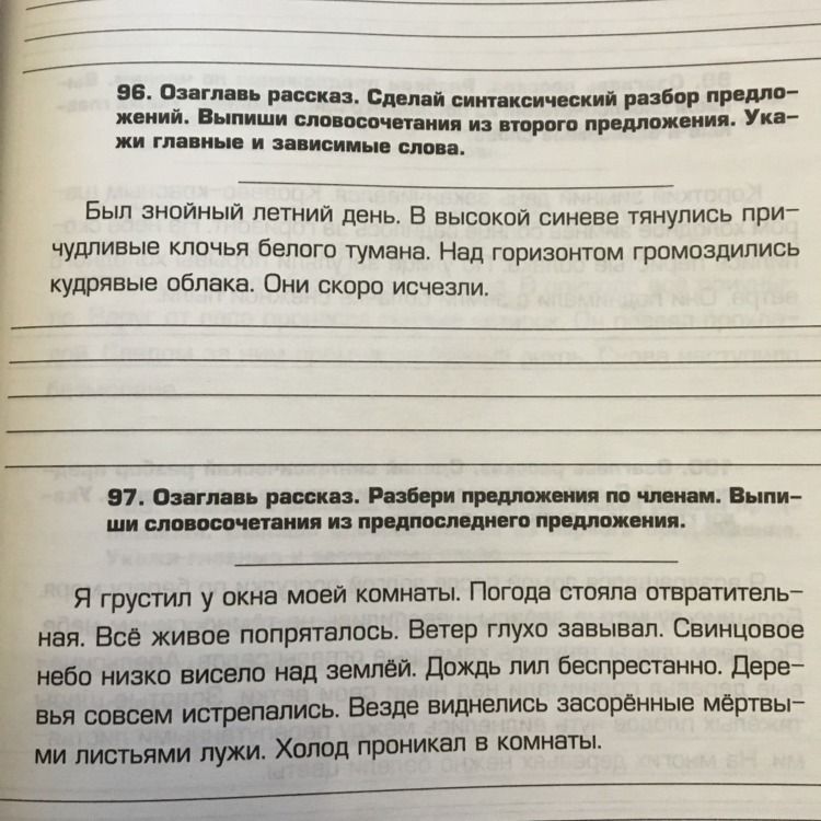 Я грустил у окна моей комнаты. Погода стояла отвратительная. Всё живое попрятолось. Ветер глухо завывал.Свинцовое небо висело над землёй. и т.д.