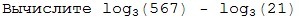 ㏒₃567 -㏒₃21=㏒₃567/21 =㏒₃27=㏒₃3³=3