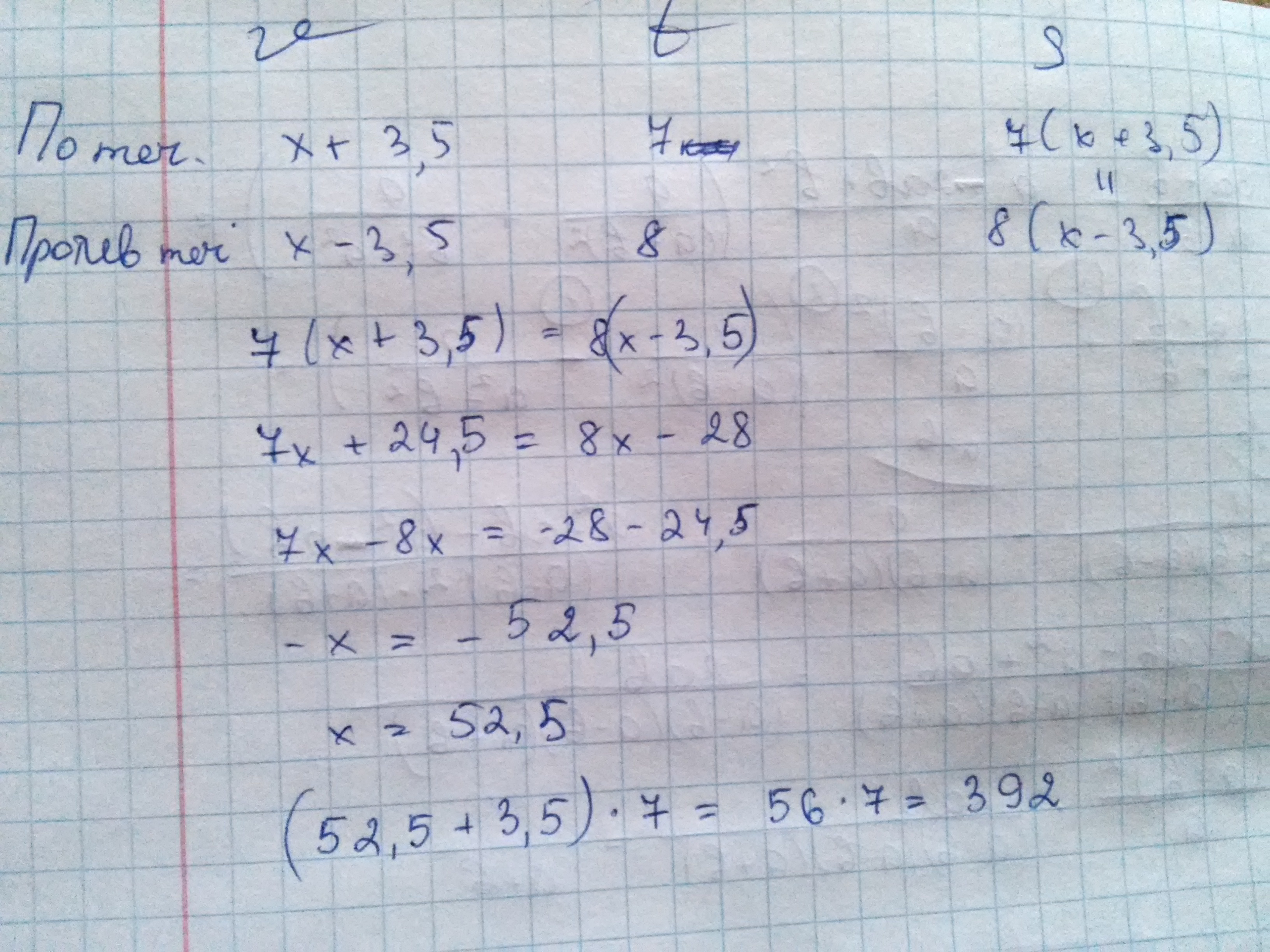 расстояние между двумя пунктами катер прошел по течению реки за 7 часов, а против течения-за 8 часов.Найдите расстояние между этими пунктами, если скорость течения реки 3.5кмч? помогите пожалуйста!!!ОЧЕНЬ НУЖНО!