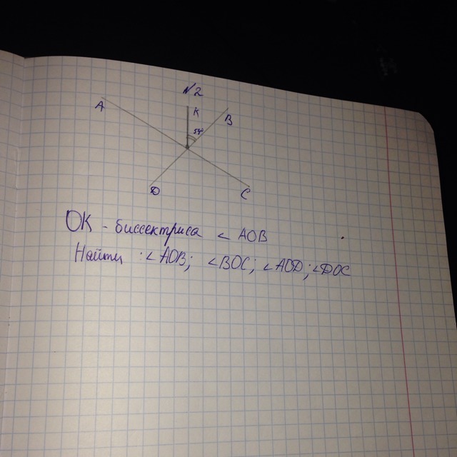 ∠АОВ=2∠КОВ=2*54=108°; ∠АОВ=∠ДОС(вертикальные)