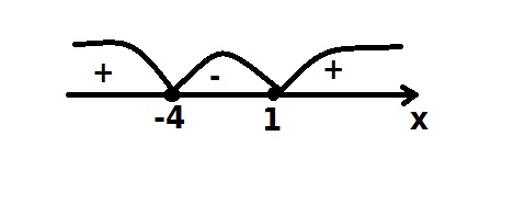 Сначала нарисуешь эту картинку, а затем напишешь. Ответ : (-∞; -4] U [1; -∞)