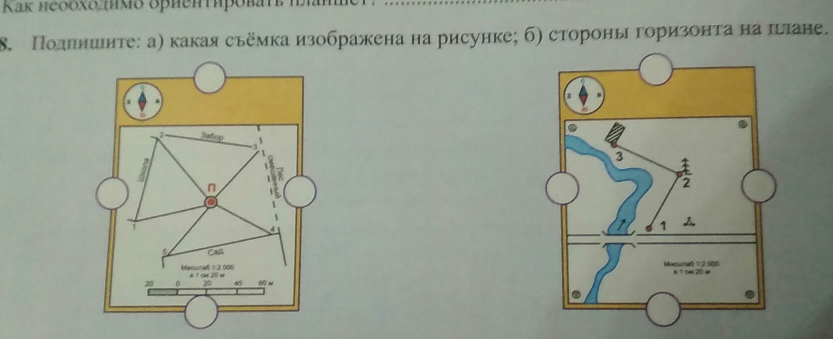 Подпишите а) Какая съёмка изображена на рисунке б) Стороны горизонта на плане