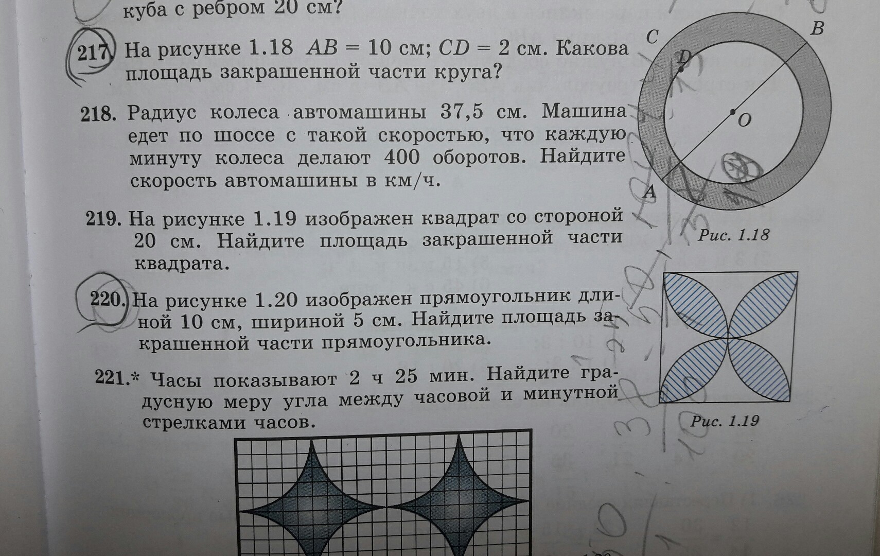 закрашенная часть прямоугольника Sз есть разность площади прямоугольника и незакрашенной части состоящей из двух полных окружностей диаметром 5см.