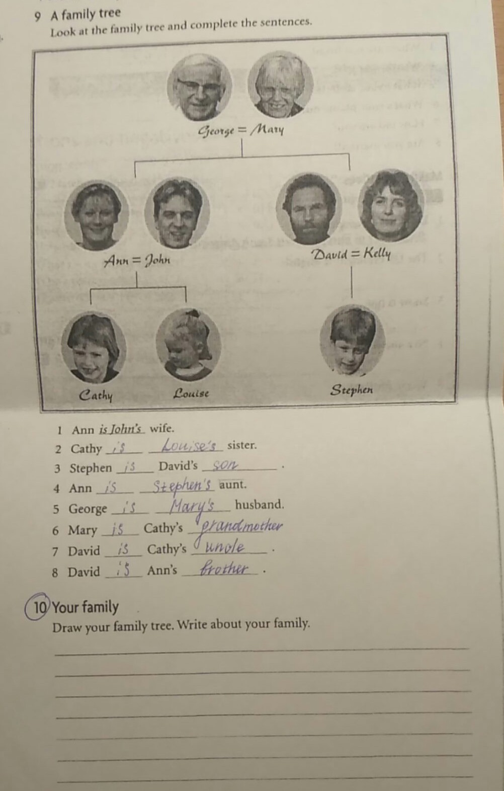 Помогите пожалуйста, срочно нужно!!! Сделать семейное дерево и написать о семье. Семья стандартная: мама, папа, брат, я, бабушка и дедушка. Имена придумайте сами, я потом заменю)) Сделать как по примеру в №9.