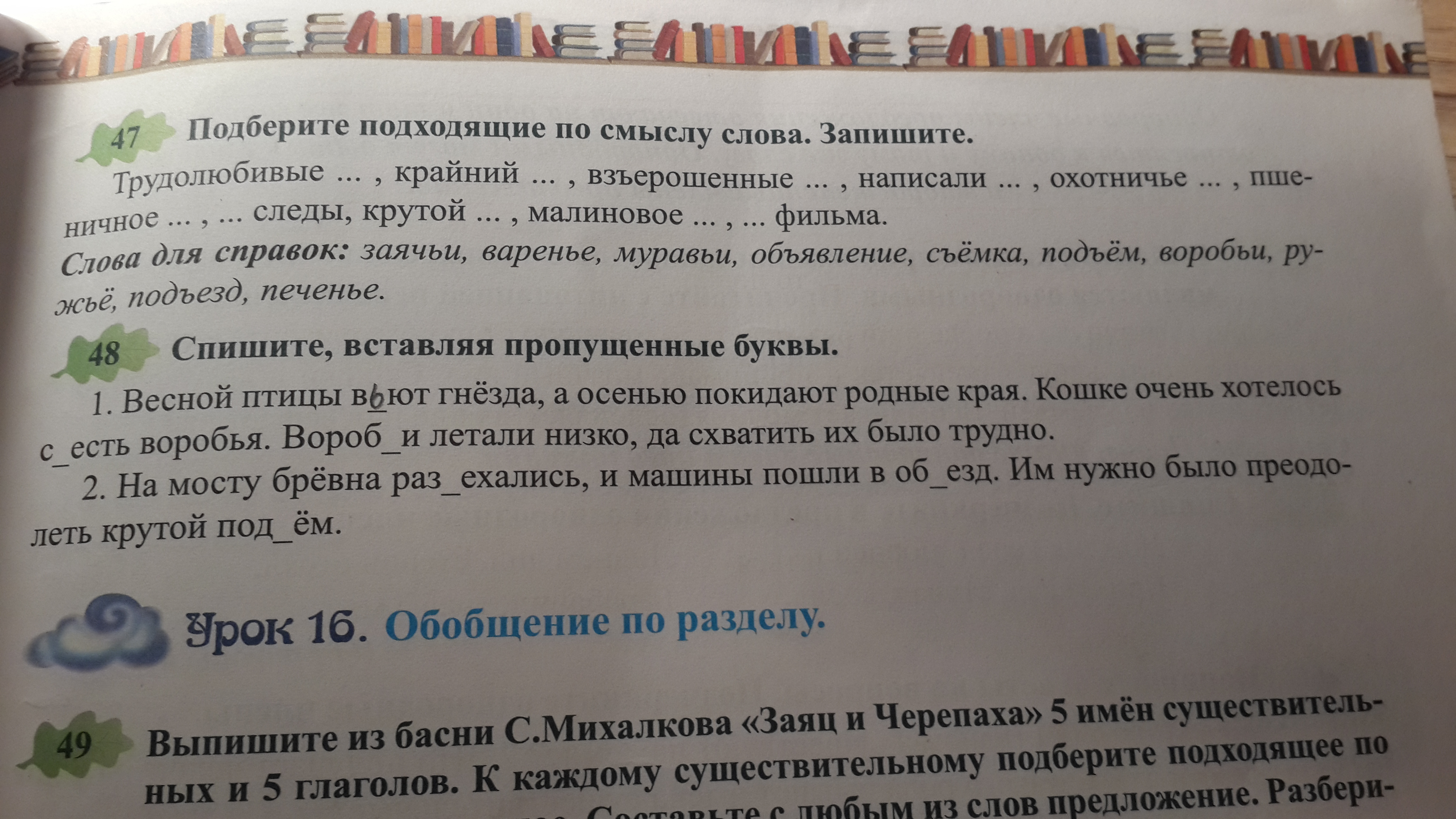 1.Весной птицы вьют гнёзда, а осенью покидают родные края. Кошке очень хотелось съесть воробья. Воробьи летали низко, да схватить их было трудно.