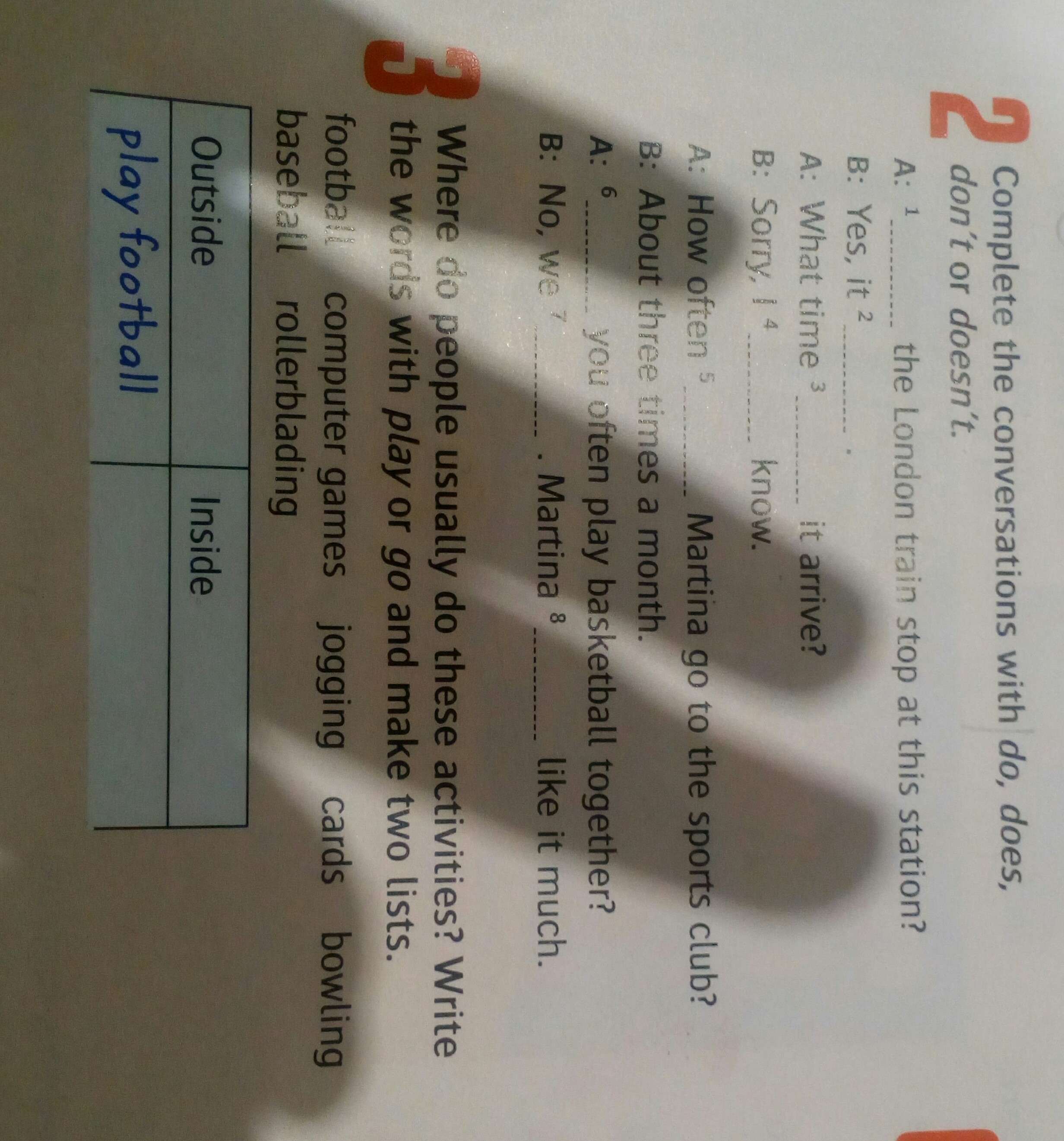 outside:play football,play baseball,go jogging,go rollerblanding.