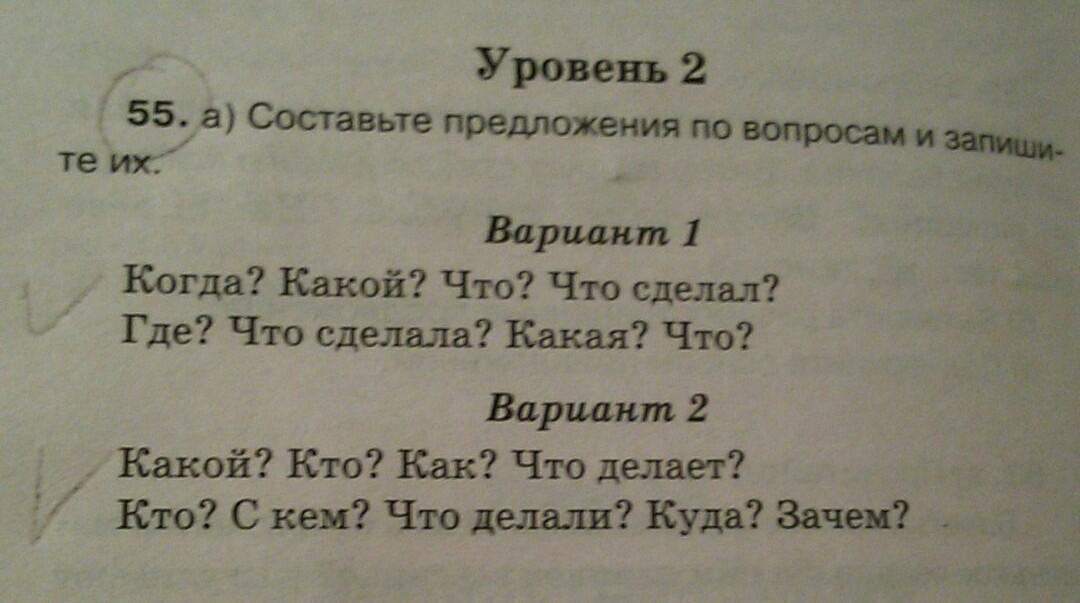 составьте предложения по вопросам и запиши их. Когда?какой? что? что сделал? где? что сделала? какая? что? какой? кто? как? что делает? кто? скем? что делали? куда? зачем?