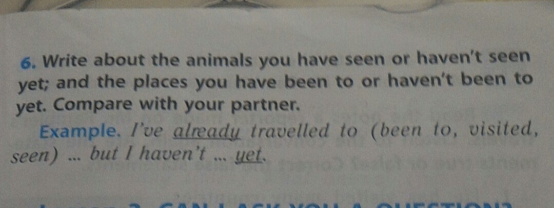 5) I've already travelled to Africa, but I haven't travelled to Asia yet.
