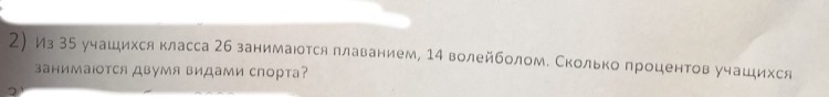 1) 26+14=40 (учащихся получается, кот. занимаются спортом), но т.к. в классе всего 35 учащихся, значит: