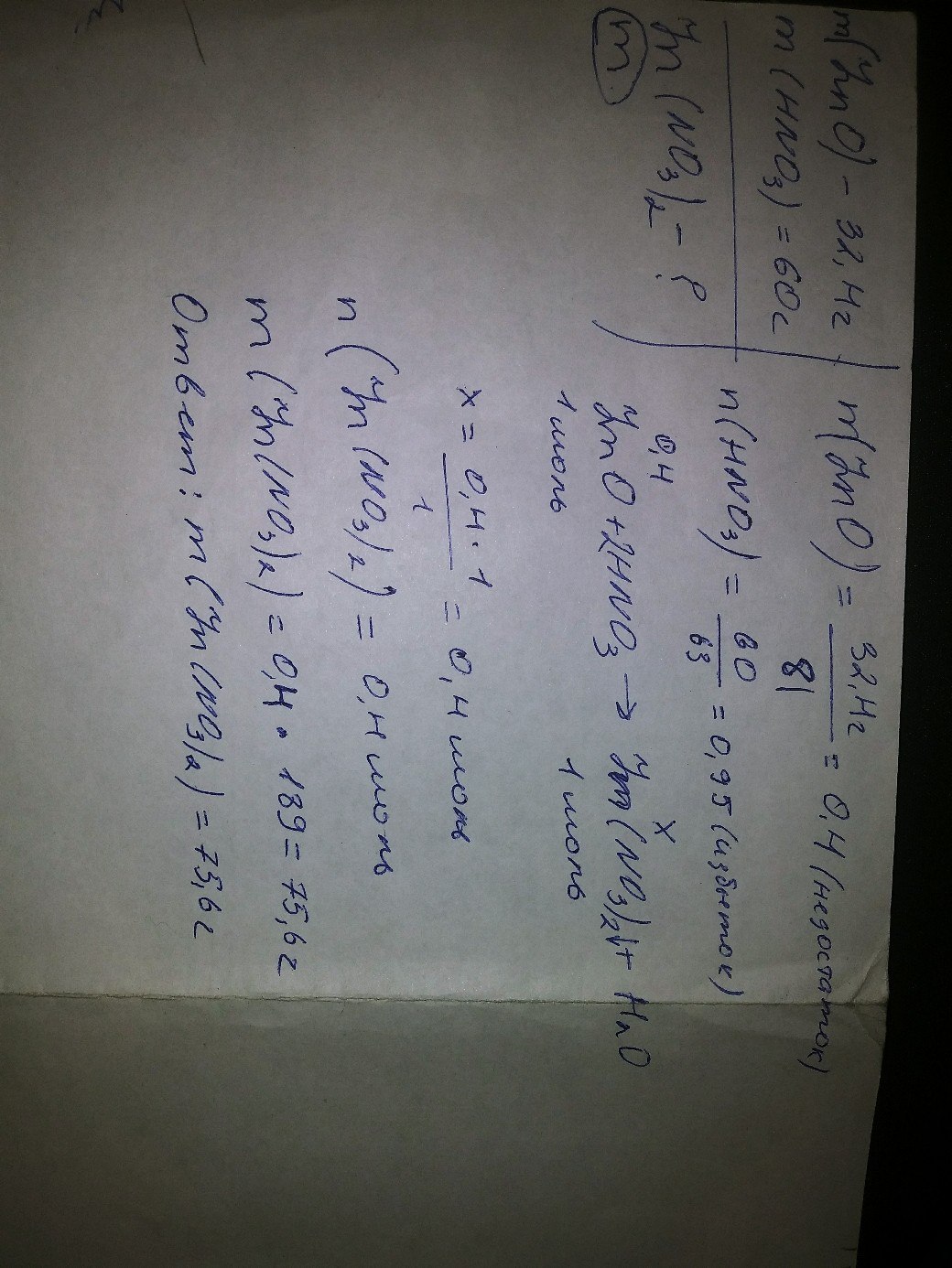 какая масса нитрата цинка образует при взаимодействии 32,4 г оксида цинка с раствором содержащем 60 г азотной кислоты.срочноооо прошуууу умоляю