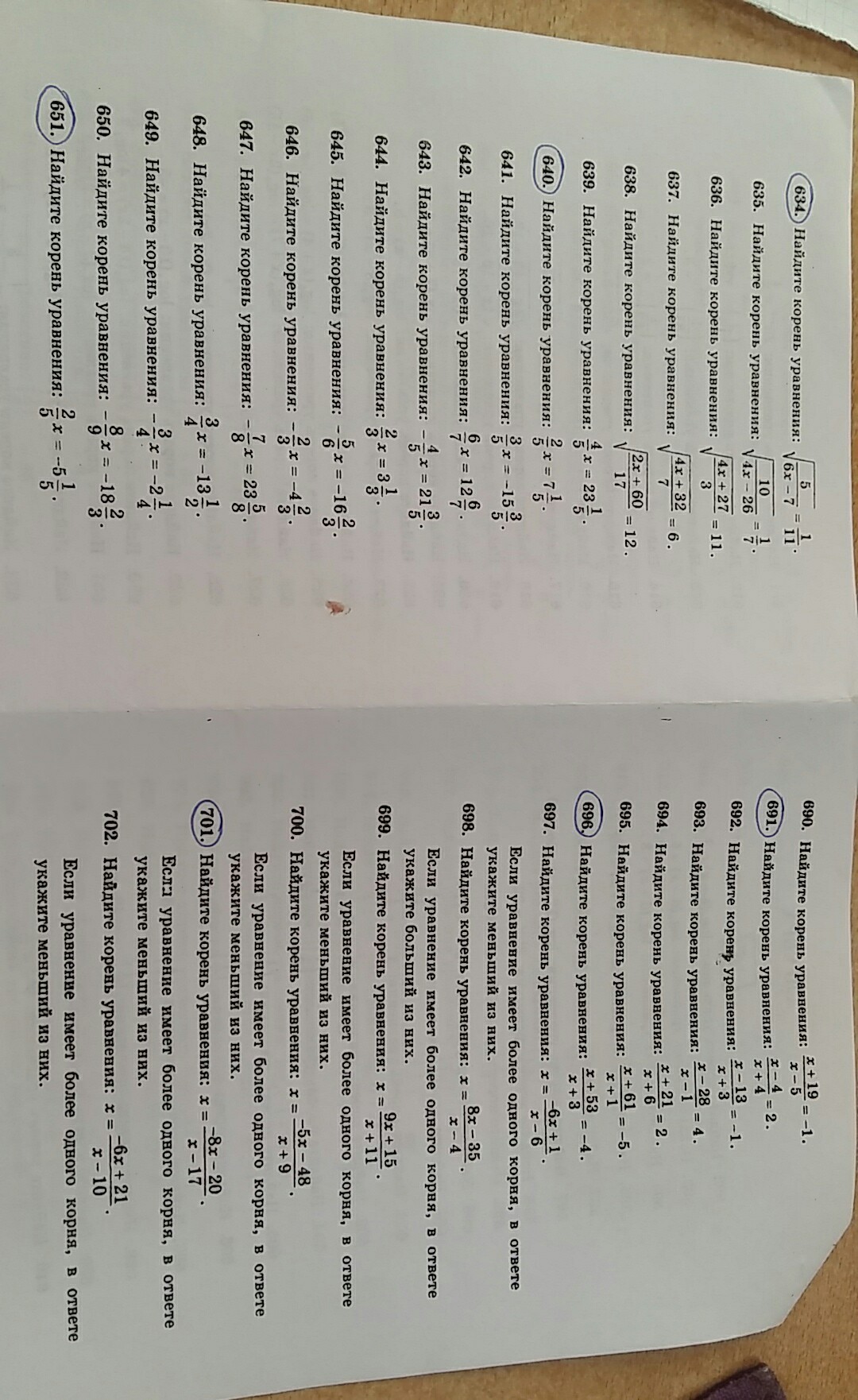 Отмеченные номера (634, 640, 651, 691, 696, 701)