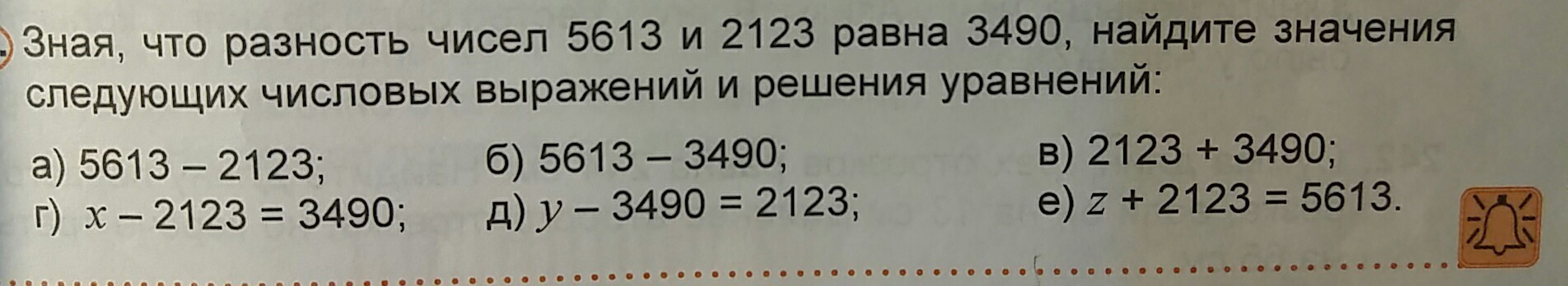 а)3490 б)2123 в)5613 г)x=3490+2123=5613 д)у=2123+3490=5613