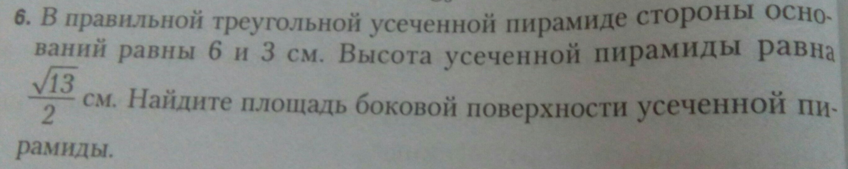 Найти площадь боковой поверхности усечённой пирамиды. Помогите СРОЧНО